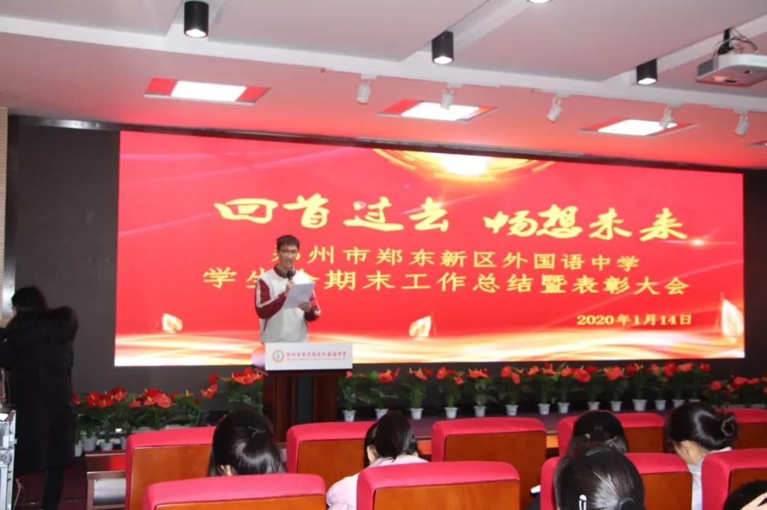 朝花夕拾,春稼秋穑,转眼间,一个学期的工作又迎来了尾声。为了更好的总结经验,梳理问题,2020年1月14日,郑州市郑东新区外国语中学召开了学生会期末工作总结暨表彰大会。参加此次会议的学校领导有政教处主任刘林和团委副书记费春芬,全体学生会成员参加大会。